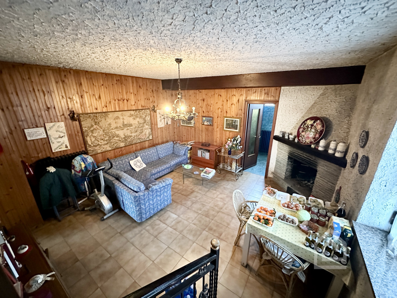 Completano la proprietà al piano terra una tavernetta con camino a legna, un bagno, un box auto, un magazzino, due ripostigli e quattro balconi.